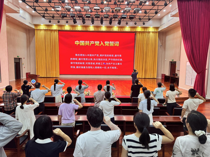 活动在庄严肃穆的氛围中拉开帷幕。全体党员教师面向党旗,高举右拳,重温入党誓词。铿锵有力的誓言回荡在会场,表达了大家坚守理想信念、践行初心使命的坚定决心。